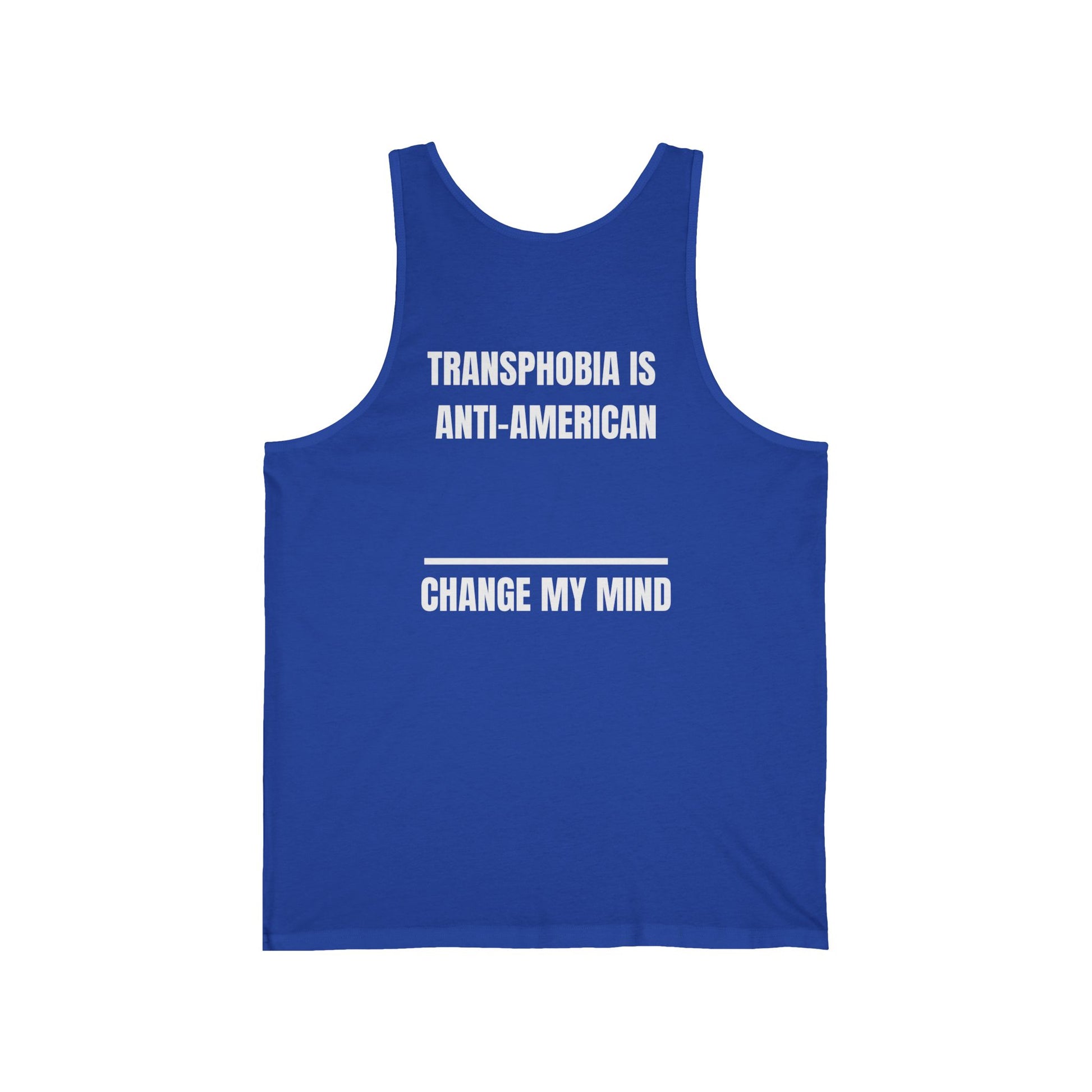 This unisex jersey tank is designed for those who value comfort and style while making a statement. Crafted from soft, high-quality fabrics, it offers a light and breathable feel—perfect for warm days or workouts. With a modern retail fit, this tank is suitable for various occasions, whether you're lounging at home, hitting the gym, or attending a casual get-together. Its bold messages resonate with individuals who stand for social change and awareness. This piece is ideal for activists, supporters of LGBTQ+ rights, or anyone looking to express their beliefs. Celebrate pride, equality, or any occasion that values love and acceptance with this impactful tank!